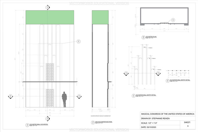 This is a theoretical redesign of a few sets in Fantastic Beasts and Where to Find Them, for my masters thesis. Located inside his magical case, this redesign of Newt's shed shows his messy workspace where he prepares everything he needs to care for his animals. Also within Newt's case is his animal area where he has habitats to house each of his creatures. This redesigned set places built scenery inside an LED volume. The third set I redesigned is the Magical Congress of the United States of America. It is inspired by art deco of the 1920s, and was designed to be both elegant and intimidating. This set uses green screens to create a digital set extension to extend the height of the space to impossible heights.